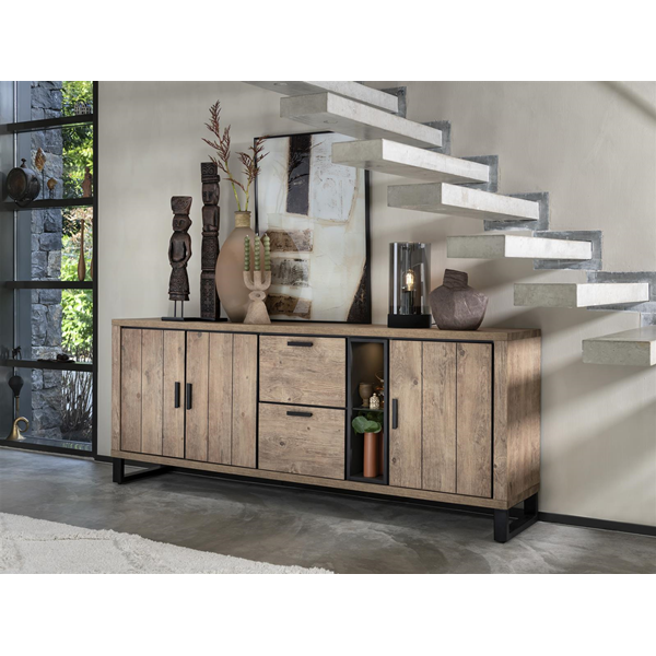 Augstums 210cmŠī Pavarotti kolekcijas bufete ir lielākā mēbele visā kolekcijā un sastāv no bufetes kumodes apakšā un augšējā skapja ar stikla durvīm, kuru savukārt apgaismo iebūvētais LED apgaismojums. Mēbeles izgatavotas no Primo Laminato (HPL) Barnwood krāsā ar melnām metāla detaļām. Skapis ir 210cm augsts, 140cm plats un lieliski iederas lauku, modernā interjerā. Stiklota augšējā daļa ir ideāli piemērota visu jūsu skaistāko dekoratīvo priekšmetu izlikšanai. Padariet savu dzīvojamo istabu par savas mājas centrālo punktu ar šo izturīgo bufeti!