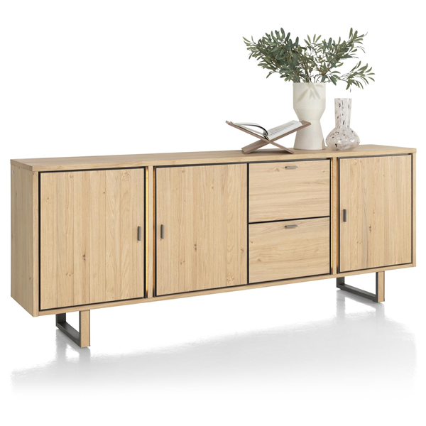 Šī Henders & Hazel Shimanto kolekcijas kumode ir 230 cm plata un 90 cm augsta. Šai ozolkoka finiera kolekcijai ir dabisks izskats, un tā ir pieejama Bright Natural Oak krāsā. Šajā kolekcijā īpaši izceļas iebūvētās LED lentes gar mēbeļu durvju malām, kuras var darbināt ar iebūvēto smalko pieskārienu dimmeru, tai ir pievilcīgi rokturi un kājas ar koka inkrustāciju. Šīs detaļas veicina Shimanto kolekcijas dabisko izskatu. Šai kumodei ir 3 lielas durvis un 2 ietilpīgas atvilktnes. Tas kumodi padara par ideālu uzglabāšanas vietu.